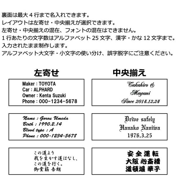 裏面は、車名等のパーソナルデータが最大4行まで刻印できます。